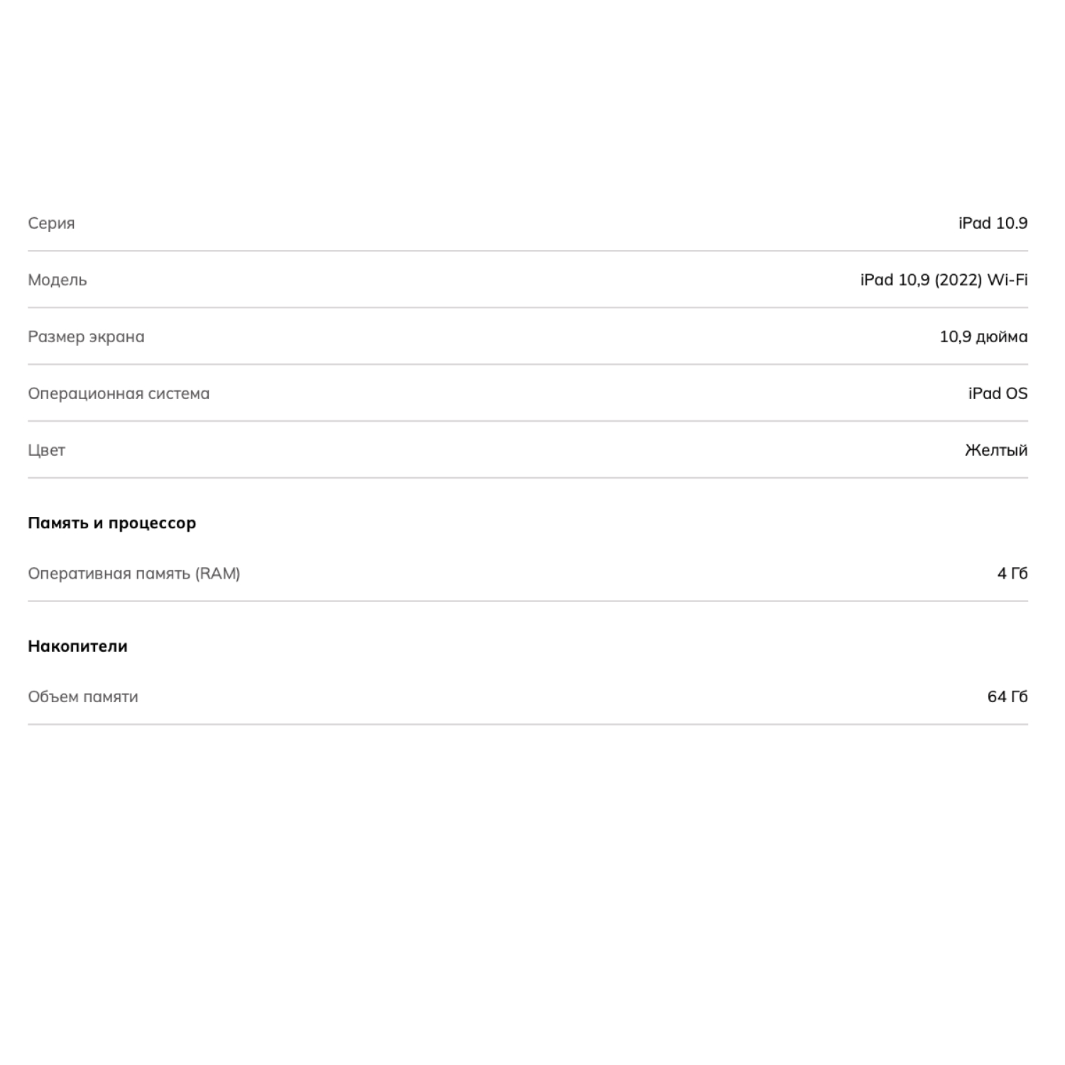 Будьте первым, кто оставил отзыв на “Планшет Apple iPad 10.9 (2022) 64ГБ, Wi-Fi Yellow, Желтый”