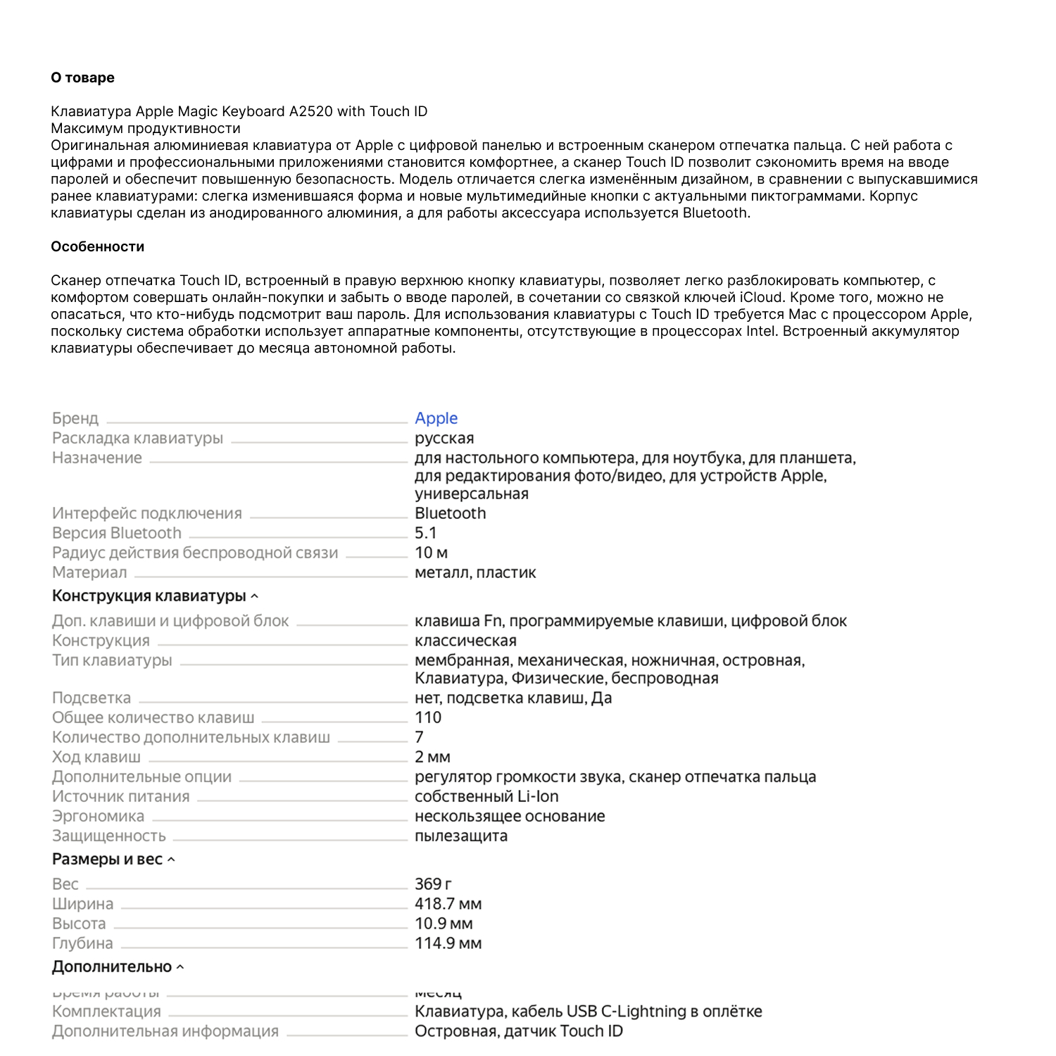 E.K Store > Товары > Планшеты > iPad > Magic Keyboard > Клавиатура Apple Magic Keyboard with Touch ID and Numeric Keypad — White (Белый) MK2C3CG/A A2520