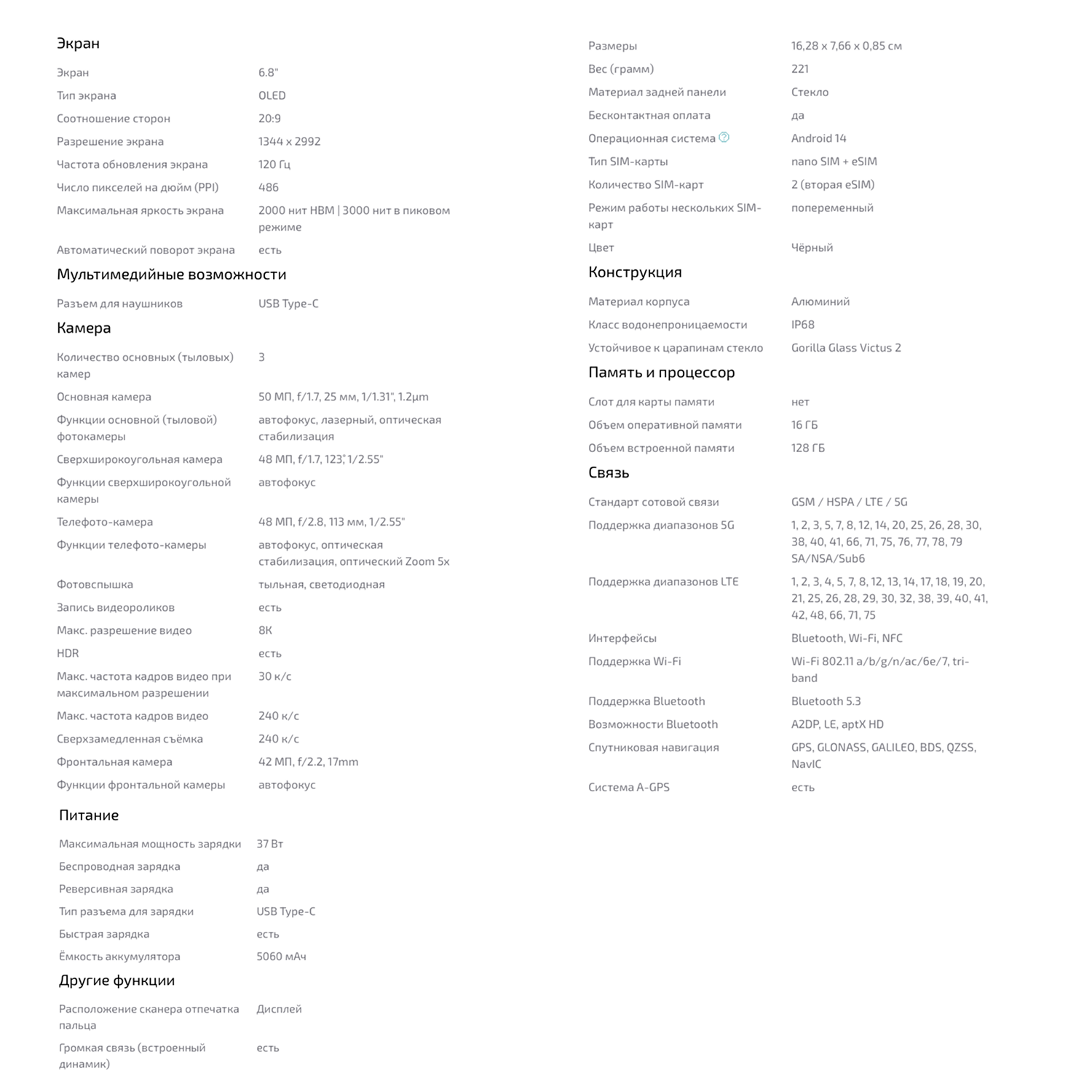 Характеристики