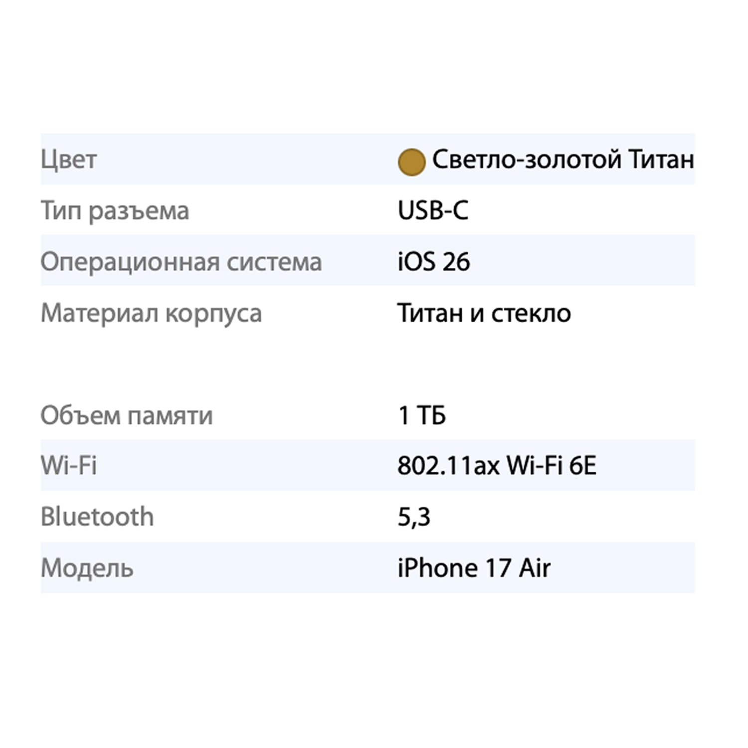 Будьте первым, кто оставил отзыв на “Смартфон Apple iPhone 17 Air 1TB, Light Gold (Золотой)”