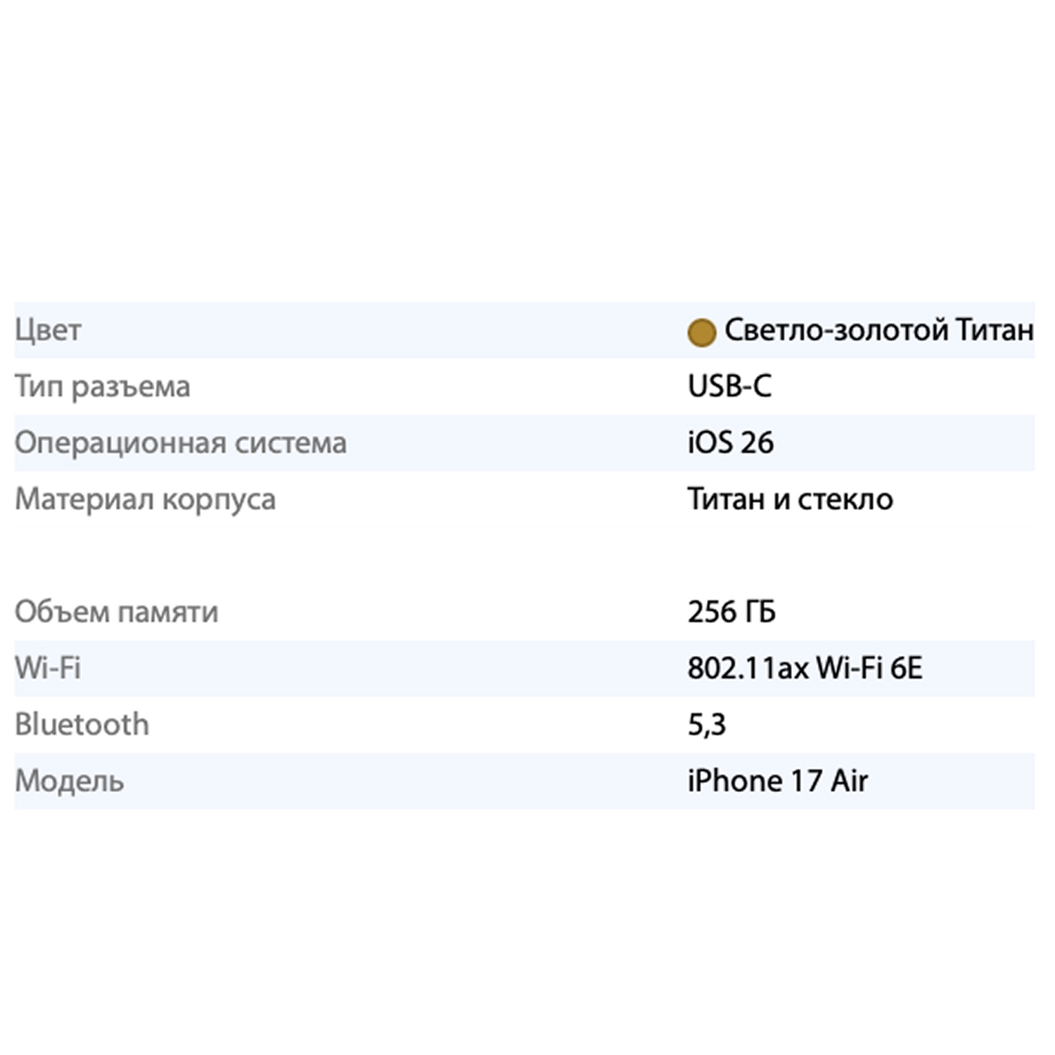 Будьте первым, кто оставил отзыв на “Смартфон Apple iPhone 17 Air 256GB, Light Gold (Золотой)”