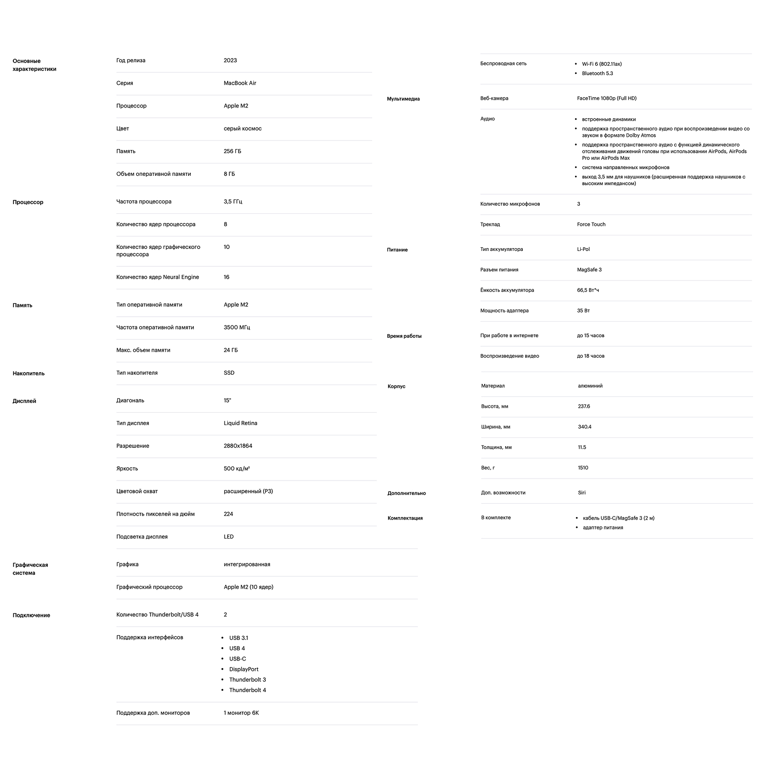 E.K Store > Товары > Mac > MacBook > MacBook Air > MacBook Air M2 > Ноутбук Apple MacBook Air 15″ (M2 8-Core, GPU 10-Core, 8GB, 256GB) («Серый космос» | Space Gray)