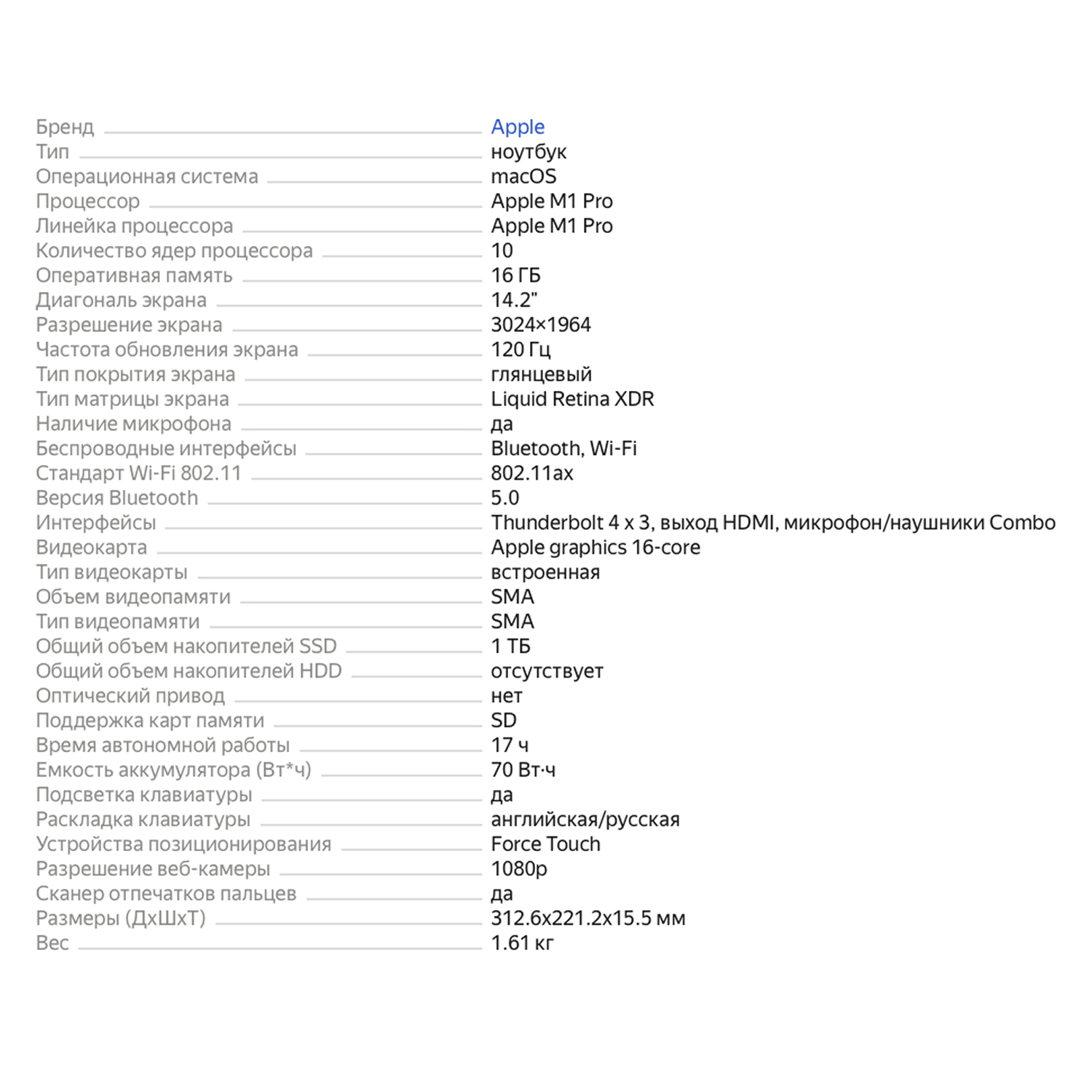 Будьте первым, кто оставил отзыв на “Ноутбук MacBook Pro 14” (M1 Pro 10-Core, GPU 16-Core, 16Gb, 512Gb (Серебристый | Silver)”