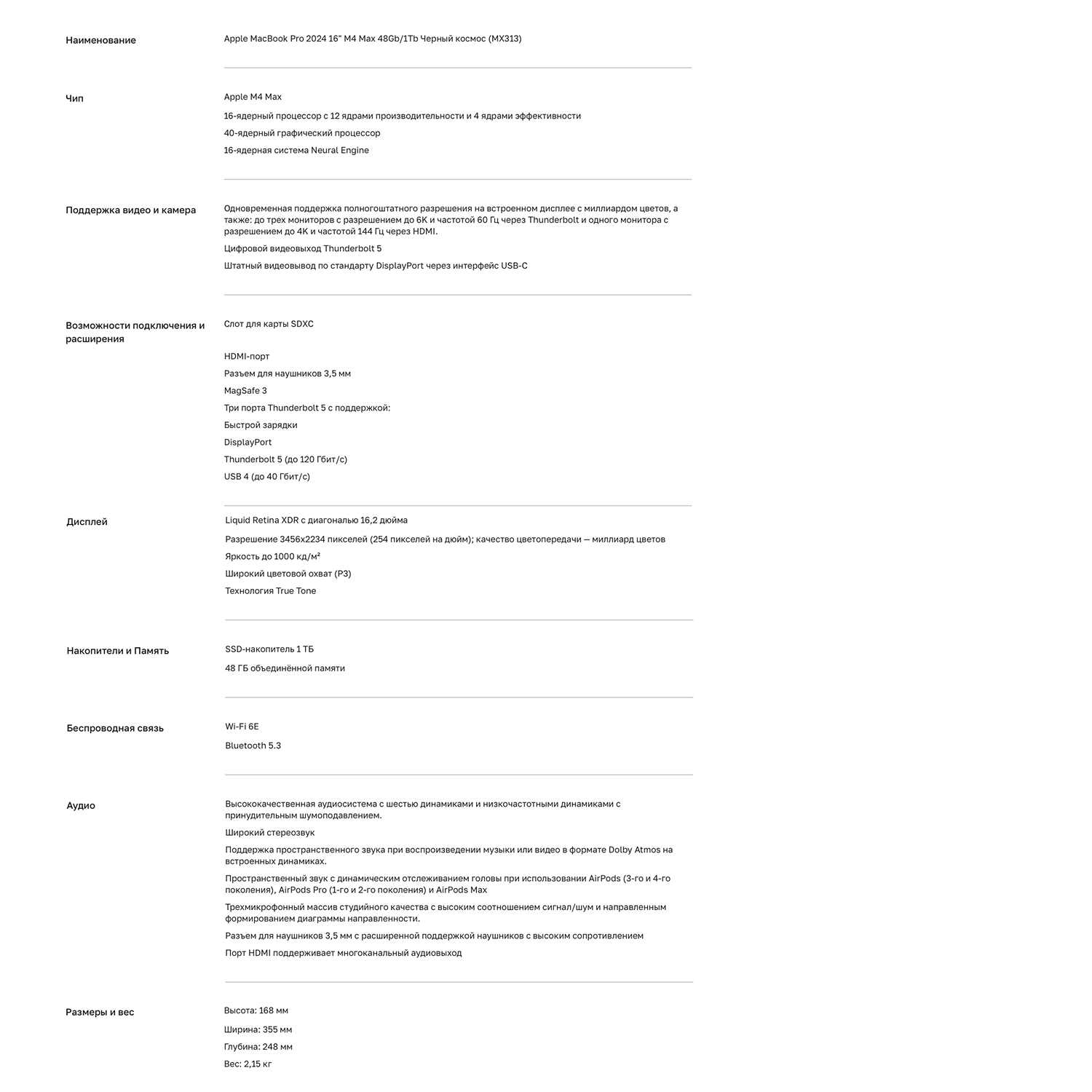 Будьте первым, кто оставил отзыв на “Ноутбук Apple MacBook Pro 16” (M4 Pro 14-Core, GPU 20-Core, 48Gb, 1Tb) («Чёрный космос» | Space Black)”